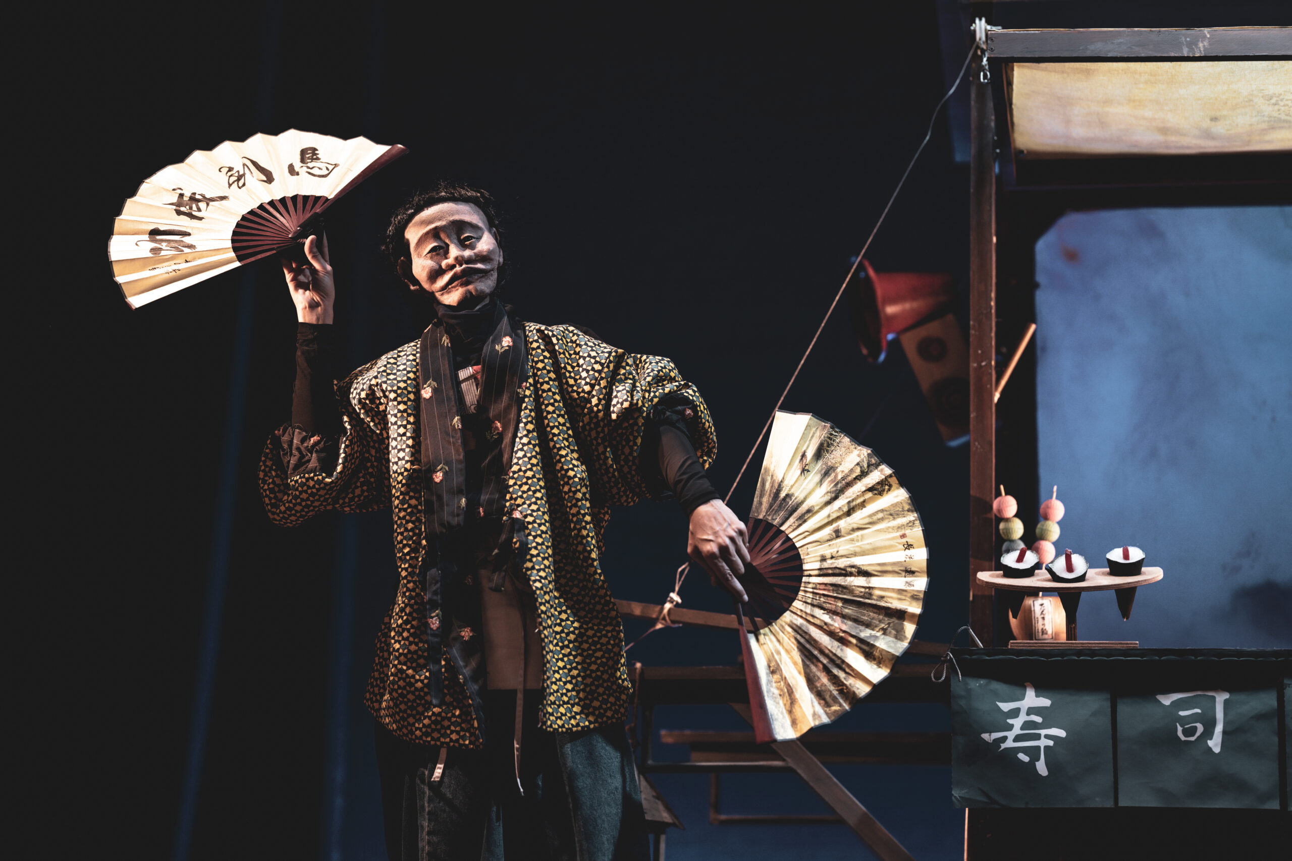 Michela Marrazzi, utilizza una tecnica di animazione molto particolare, una marionetta ibrida a taglia umana manipolata attraverso l’utilizzo della bocca. Un lavoro di estrema precisione che rende ancora più magica la presenza scenica di Sushi. La scena e gli oggetti di cui si compone, evocano un Giappone senza tempo, dove confluiscono elementi della tradizione nipponica ed altri ispirati al mondo immaginifico di Miyazaki: entrambi, oggi come non mai, continuano a esercitare il loro fascino sulle nuove generazioni e non solo.